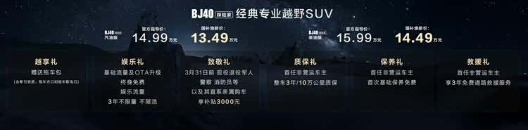 BJ40探险家以13.49万元的起售价入市,一举击穿了传统硬派越野车高昂的价格门槛,让更多消费者能够触及专业级越野体验。这不仅是对国家促消费政策的积极践行,更是北京越野以用户为中心、推动品类普及的切实举措。