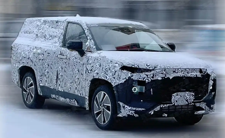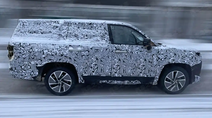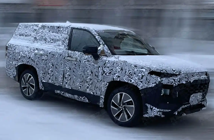 近日,汽车圈流传着一组令人瞩目的谍照:一款体量庞大、伪装厚重的SUV正在进行路试。这款车的尺寸之大,即使在重度伪装下也难以掩盖其气势——其车身长度预计超过5.2米,宽度可能超过2米,轴距或在3.1米以上。从轮廓看,它拥有近乎垂直的车头设计、平直的车顶线条和宽大的D柱,呈现出典型的美式全尺寸SUV风格。