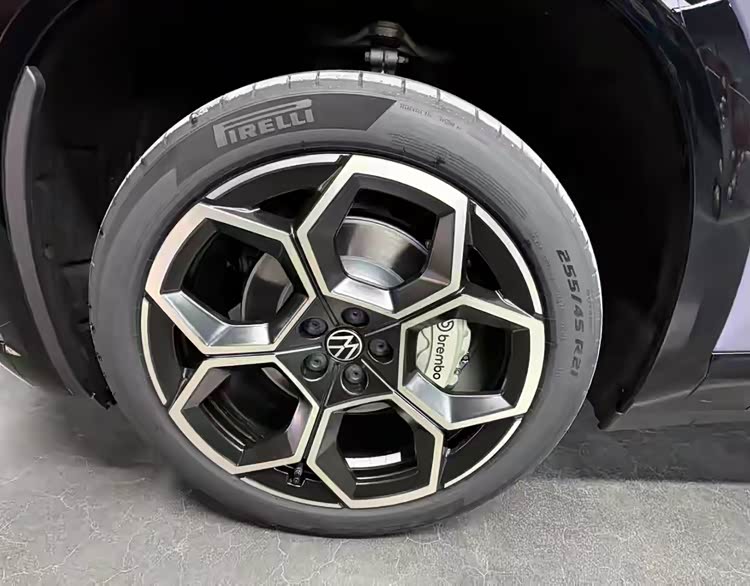 与众08整车长宽高分别达到了5000*1954*1688毫米,轴距为3030毫米,算得上是个大块头了,这样的身材有着一定的存在感,从侧面来看,采用隐藏式电动门把手,轮眉应用亮黑色材质,侧窗到了后方进行了上扬,双色花瓣状的轮毂吸引人眼球,将全系标配4活塞布雷博刹车卡钳。