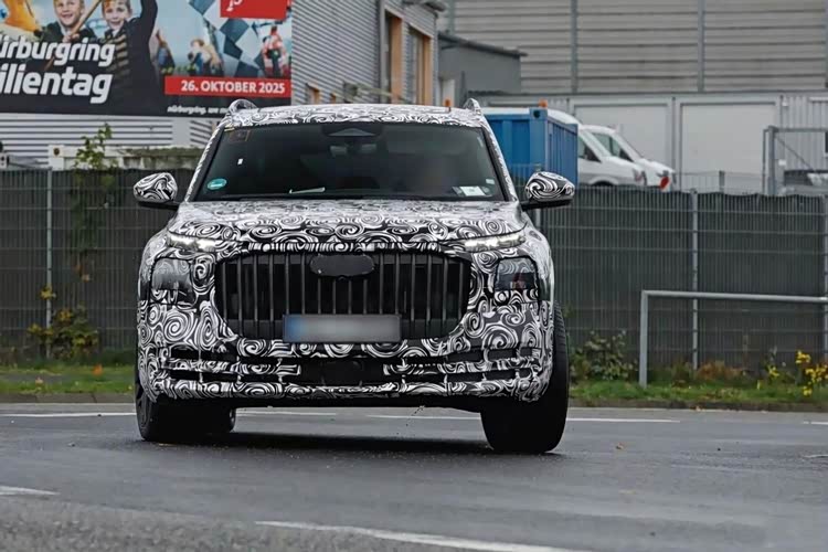 近日, 奥迪Q9(参数|询价)再度曝光伪装测试车,尽管依旧是完全伪装覆盖,可无论是暴露在外的格栅、日行灯,还是能够从轮廓边框结构判断出来的车身线条等等,它距离量产似乎不远了。在引擎盖的边缘,奥迪Q9完成了数字LED日行灯的覆盖,它并没有像新一代的奥迪A6、奥迪Q5那样使用一体式灯组,而是完成了与下方矩阵式LED远近光灯的分体布局。而且就区间结构来看,其应该为未来布局激光雷达等硬件留下余地。