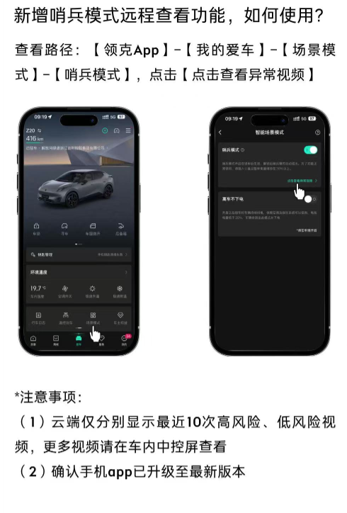 在安全层面,哨兵模式支持远程查看,车辆异常触发后的视频会按时间倒序排列,并区分高、低风险类别,云端分别保留10条记录,信息筛选更加清晰。同时,液晶仪表新增了导航红绿灯倒计时、电池电量百分比显示等功能,HUD抬头智显也增加了巡航红绿灯倒计时、绿波车速、目的地剩余里程与时间等信息,为用户提供了更加全面和准确的驾驶辅助。