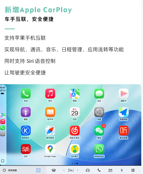 苹果用户可以通过CarPlay在车机端完成导航、通讯、音乐续接等一系列操作,同时支持Siri语音控制,操作逻辑与手机端高度一致,极大提升了使用的便捷性。华为用户则可以利用HiCar实现手机与车机的深度联动,包括融合桌面与智慧桌面,小艺语音助手也能自然接入用车场景,为用户提供更加智能化的服务。而对于OPPO、小米、vivo等安卓用户,CarLink方案提供了稳定的互联方式,车机可作为手机的扩展屏幕,显示导航信息、消息通知等内容,让用户在驾驶过程中也能随时掌握手机动态。