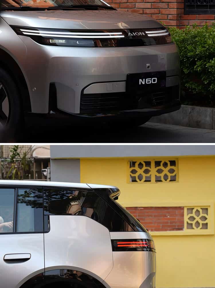 外观设计上,埃安N60的革新肉眼可见。封闭式前脸搭配贯穿式LED日行灯,中央嵌入可发光的“AION”标识,既符合新能源车型的设计潮流,又强化了品牌辨识度。前包围的大面积进气口不仅提升了视觉张力,中央集成的毫米波雷达与两侧通风槽,还兼顾了实用性与空气动力学优化。