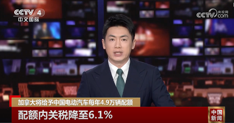 1月16日,加拿大总理卡尼访华签订《中加经贸合作路线图》将中国电动汽车进口关税从100%降至6.1%,并设立每年4.9万辆的配额,配额将按比例逐年增长,五年内预计增至7万辆/年。