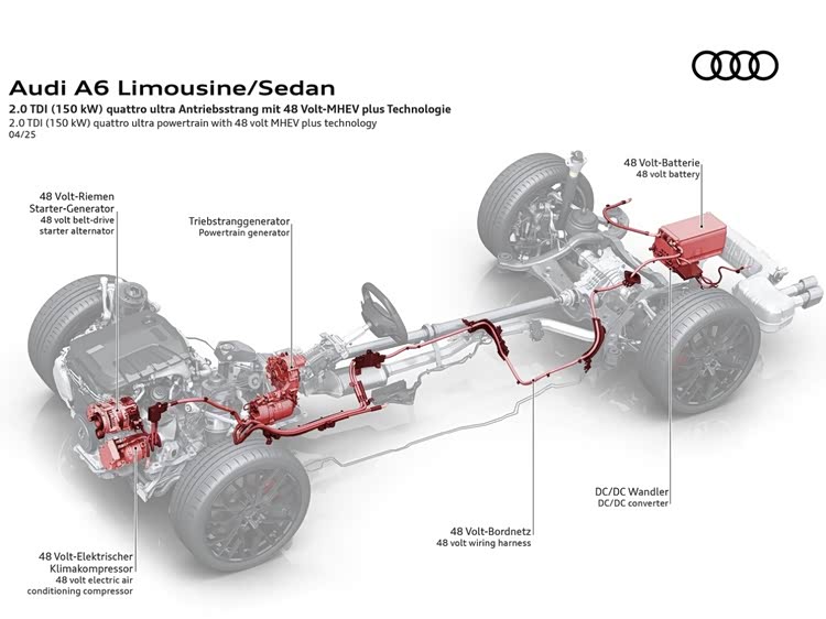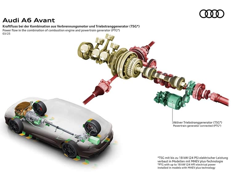更重要的是,无论是DXG版本还是DWV版本,一汽奥迪都为其配备了MHEV PLUS轻混系统,其核心是P0+P3的HDI双电机单元,以及位于后备箱的48V锂电池组,这是PPC平台相比MLB平台最核心的技术革新。