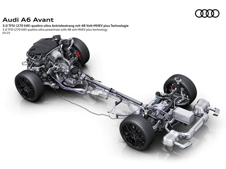 至于顶配车型,一汽奥迪依旧为其配备了EA839 3.0TFSI发动机(DWV),且同样为匈牙利原装进口型号,在经过重新优化调校后,其最大功率来到270kW,比老款提高了20kW。此外,该版本同样配备以多片离合中央差速器为基础的quattro ultra智能四驱系统。