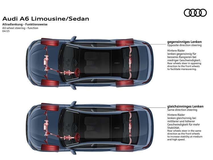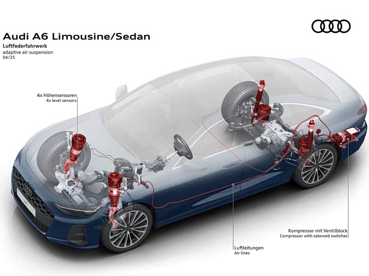 除此之外,新一代奥迪A6L还提供四轮转向系统、主动空气悬架可供选装,后者还首次支持智能语音控制底盘升降,这在之前是A8L才有的硬核待遇。(文中部分图片来自欧规版A5/A6/Q5)