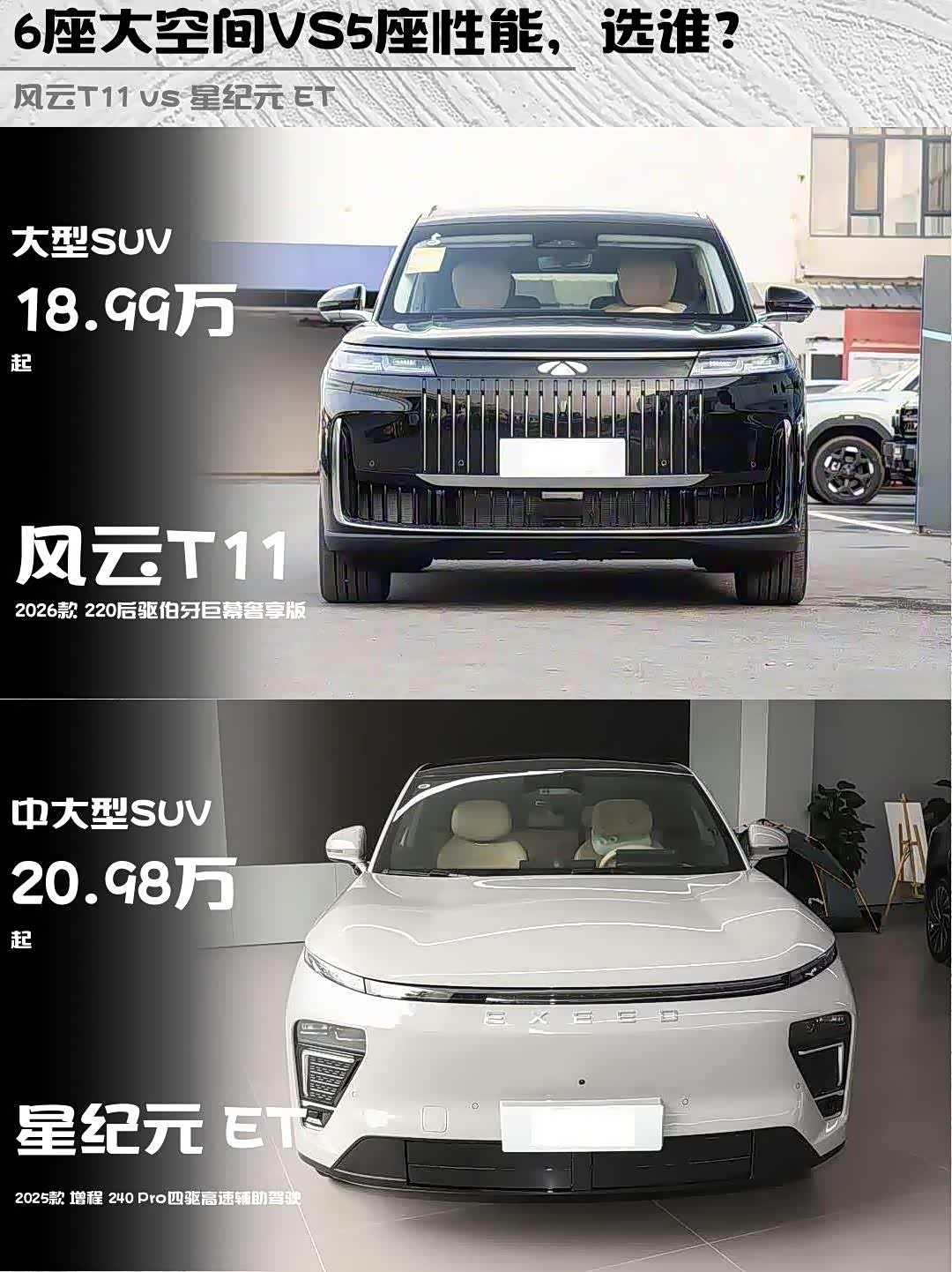 车家号·0浏览·2026-01-21 08:20 · 北京最近深度体验了两台热门增程SUV——风云T11 2026款 220后驱伯牙巨幕奢享版和 星纪元 ET(参数|询价) 2025款 增程 240 Pro四驱高速辅助驾驶,发现它们简直是两个性格迥异的优等生!🤔