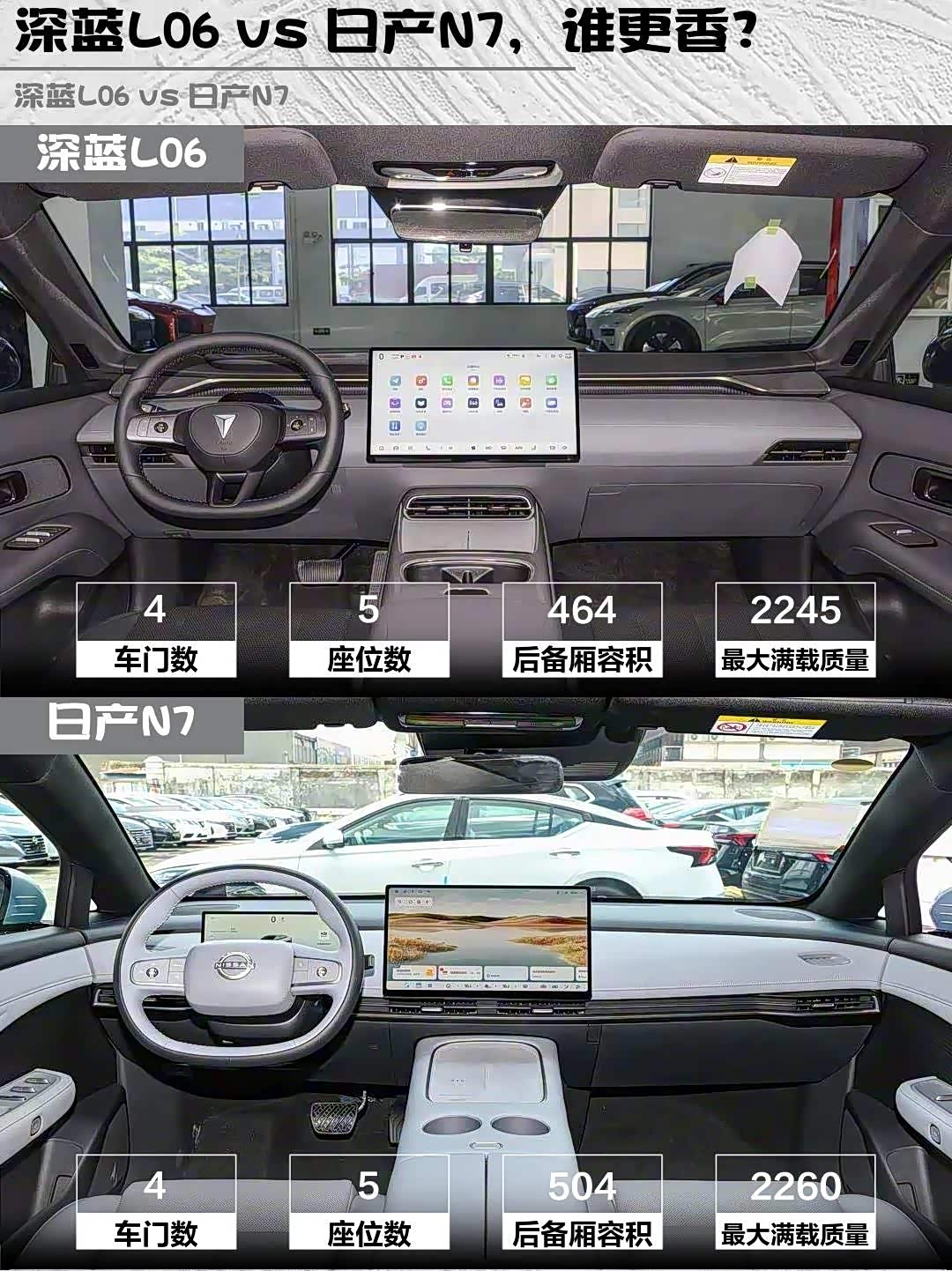细节彩蛋:深蓝L06的电动尾翼升起来瞬间,路人的注目礼绝对满足虚荣心😎 而日产N7的冷暖冰箱能温奶瓶,对奶爸更友好。最后说价格,14.49万 vs 11.99万,深蓝多花2.5万换来激光雷达+长续航+性能底盘,你觉得值不值?