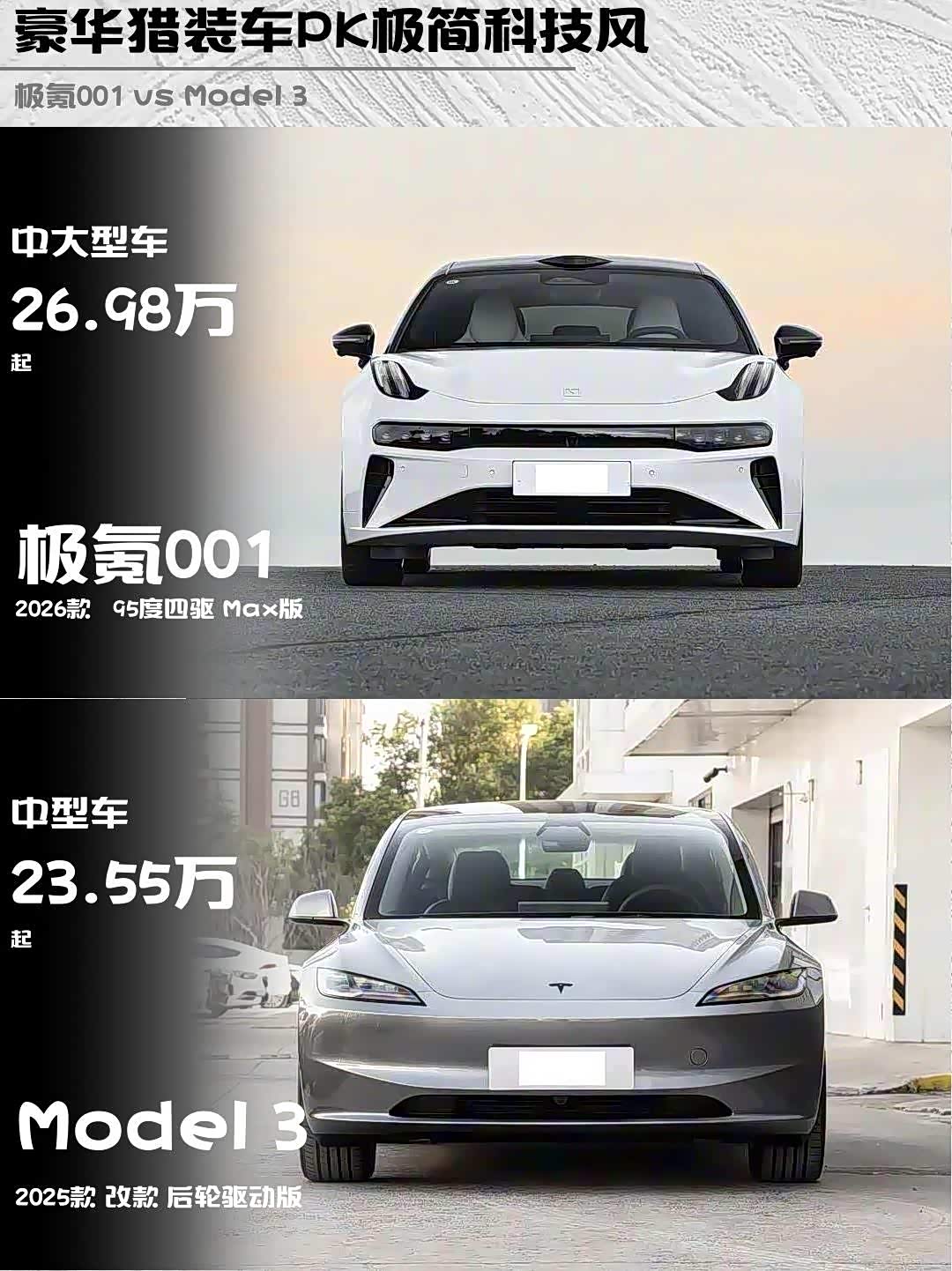 最近深度试驾了 极氪001(参数|询价) 2026款 95度四驱Max版和Model 3 2025款改款后驱版,两款都是30万级热门电车,但性格截然不同!分享下真实对比感受👇