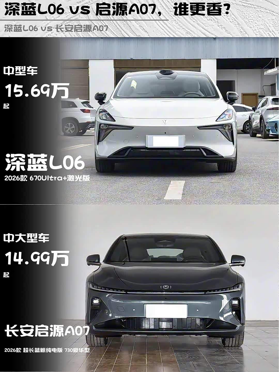 车家号·0浏览·2026-01-21 08:30 · 北京最近深度试驾了两款15万级纯电轿跑——深蓝L06 2026款 670Ultra+激光版和 长安启源A07(参数|询价) 2026款 超长蓝鲸纯电版 730豪华型,作为同门兄弟车型,实测后发现性格差异比想象中还大!🔥