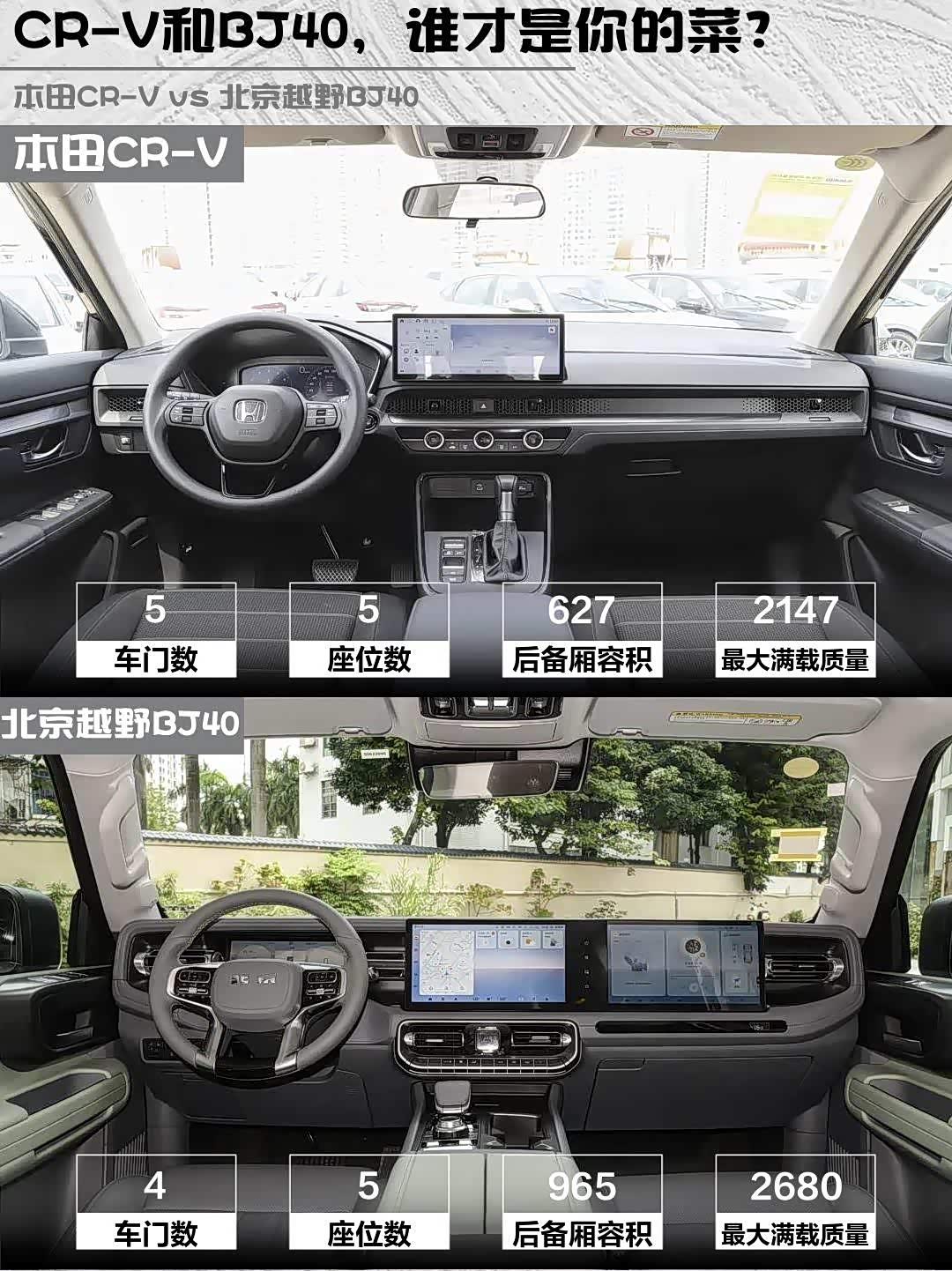 最后划重点:CR-V是经济实用的“家庭暖男”,BJ40是野性十足的“户外硬汉”。你更pick哪款?评论区见!👇(悄悄说:我最后选了CR-V,毕竟加油时的心痛谁懂啊...)
