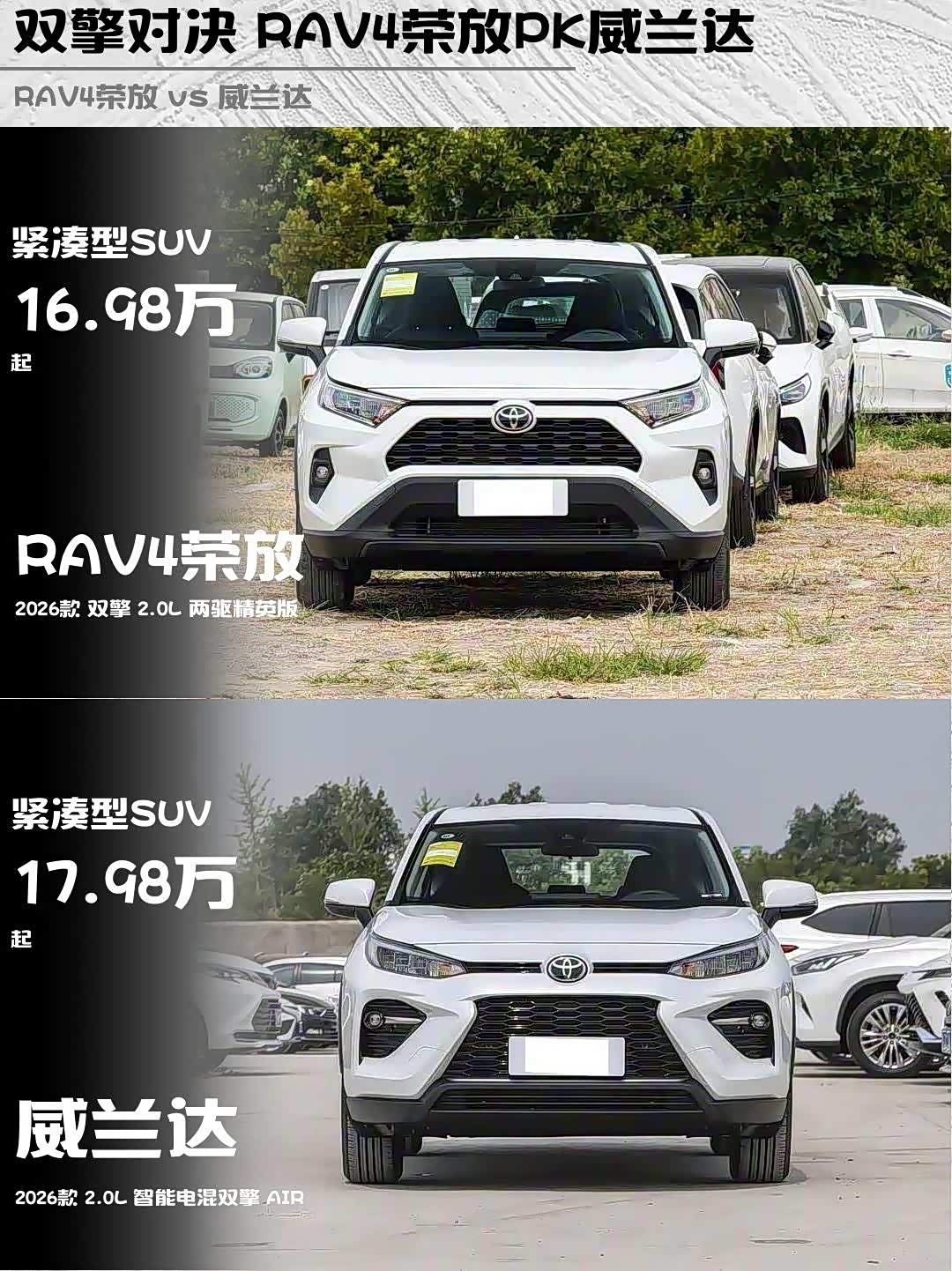 RAV4荣放16.98万 vs 威兰达17.98万,差价1万到底值不值?RAV4这波定价确实更香,但威兰达多了前雷达和电动天窗,这波差价你们觉得值吗?🤔