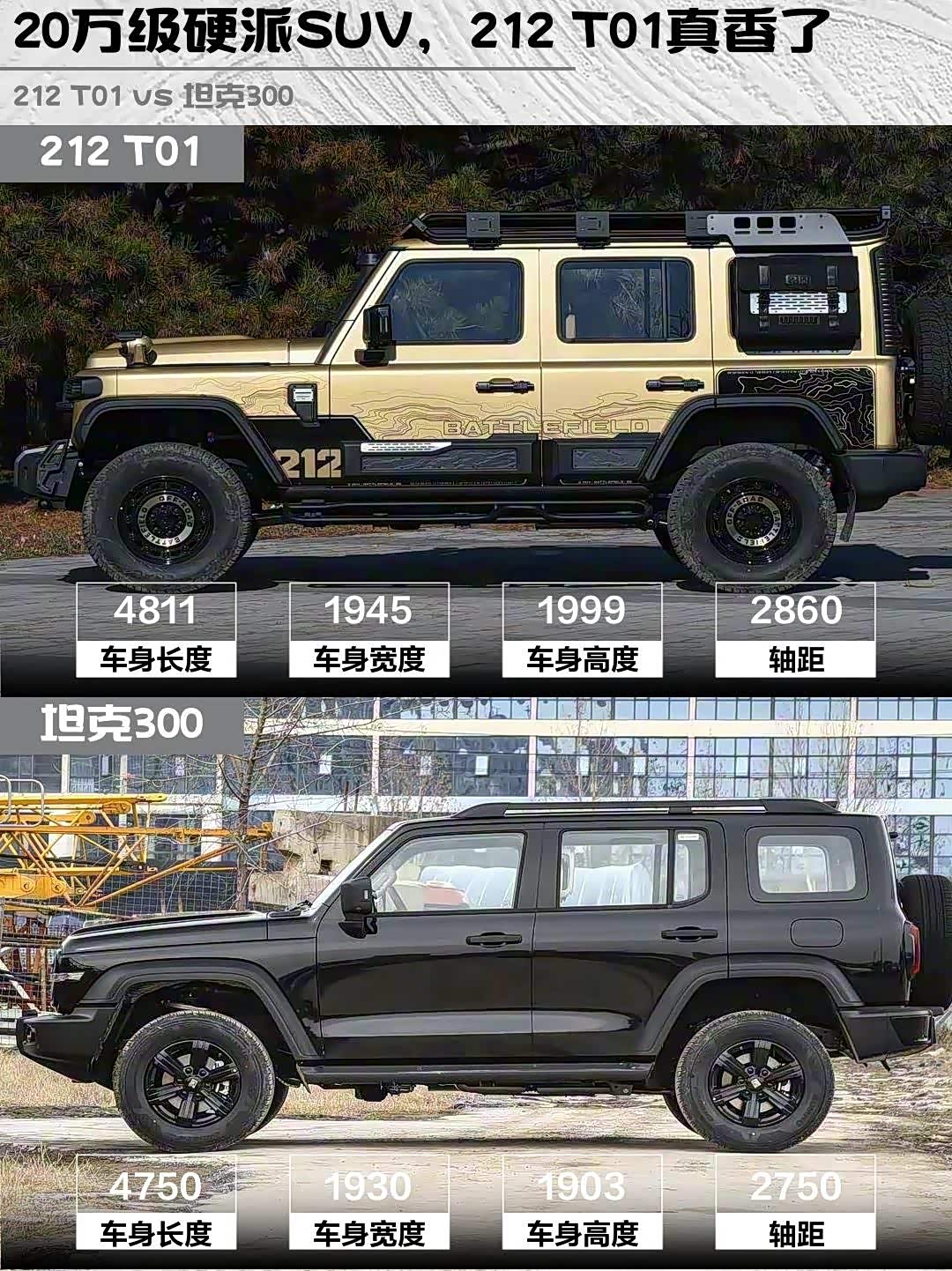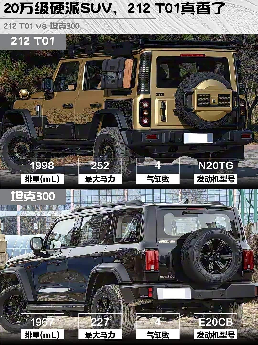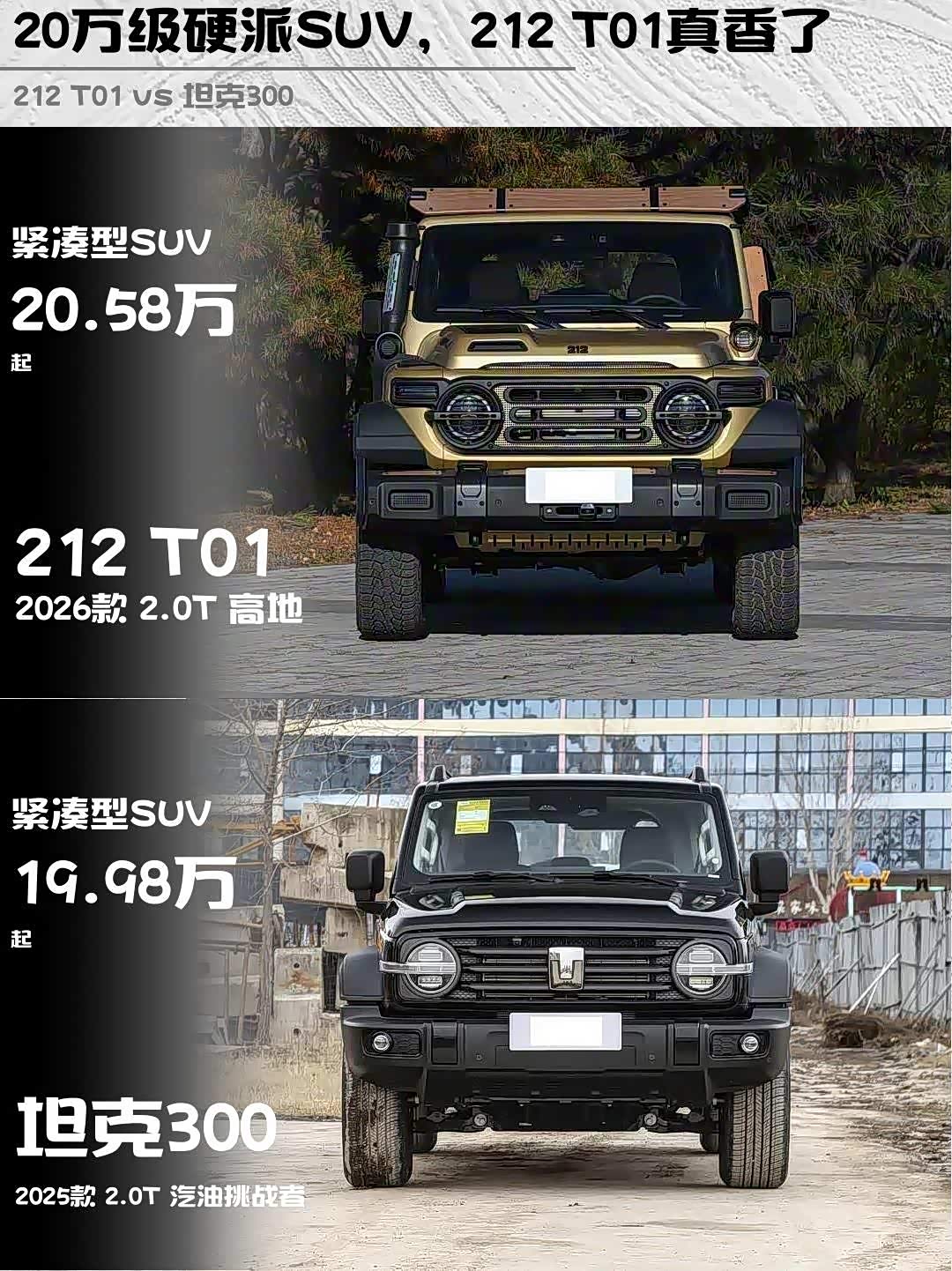 最近被硬派越野车疯狂种草!😍 纠结 212 T01(参数|询价) 2026款2.0T高地和坦克300 2025款2.0T汽油挑战者好久,实测对比干货分享给同样纠结的兄弟👇