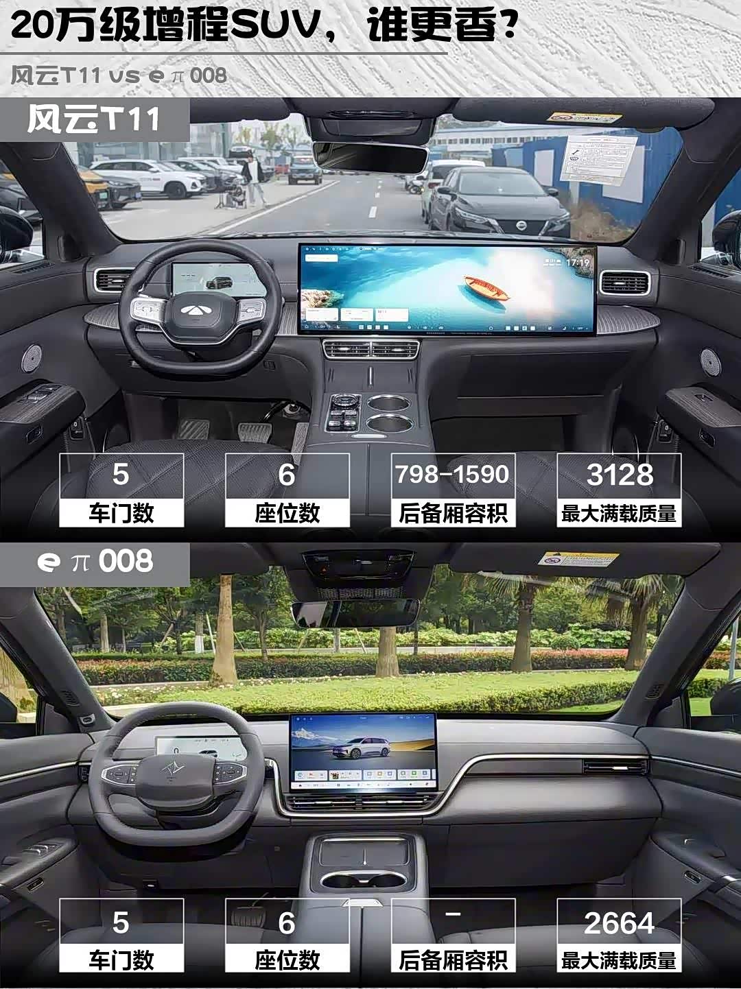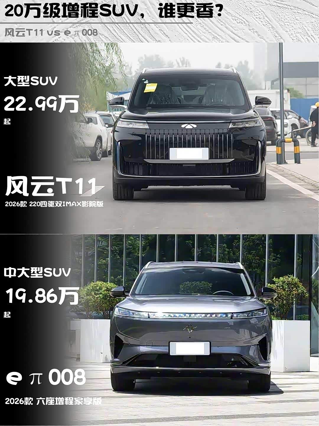 最近深度试驾了两款热门六座新能源SUV—— 风云T11(参数|询价) 2026款 220四驱双IMAX影院版和eπ008 2026款六座增程家享版,作为奶爸车重度用户,必须来波硬核对比!🔥