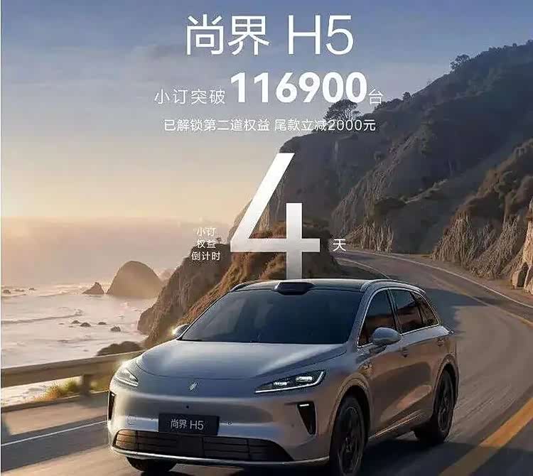 要知道,尚界H5上市前的预热堪称“现象级”,订单数据持续攀升:1小时小订突破2.5万台,18小时突破5万台,后续更是相继刷新至8万台、10.18万台、11.69万台,最终定格在15.1036万辆。