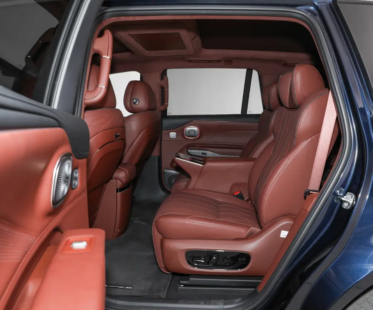 昊铂HL的空间非常大,甚至可以用MPV来形容,不仅空间有优势,在舒适上更有优势,它的尺寸为5126*1990*1750毫米,轴距为3088毫米,加上方方正正的造型布局,车窗玻璃采用方型设计,所以就保障后排头部空间。它的座椅非常宽大,可以把乘客包裹起来,头枕也是非常大,包括两侧的包裹性都很强。之前多向电动调节,支持前后移动,支持腿托功能,可以通过扶手触屏设置按摩通风和加热,也可以打开吸顶娱乐片,扶手箱带有车载冰箱,前排座椅带有小桌板,堪比是移动式办公厅了。你看B柱扶手设计都很大气,手感也不错,它的空气悬架还支持软硬或者高低调节,避免坑坑洼洼烂路带来不适感,可以过滤掉很多余震和细碎的路噪,舒适度比GL8还高级。