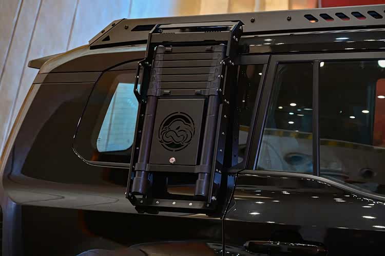 标配 128 升大油箱,续航超 1100km,搭配 5 毫米加厚底护板,无惧极端路况冲击;升级高强度铝合金牛栏杠、高强度碳素结构钢冲沙杠及一体化绞盘支架。配备 A 柱魔术支架、可集成各种灯光配置,灯光控制采用飞机座舱的按键设计,操作也更加方便。车辆还搭配了承重强、耐腐蚀的车顶平台,可以搭载工具箱、树枝分离器、侧帐等多种配件。外挂一体收纳工具箱,可收纳各类零碎物品;专利设计的侧爬梯,可以拉伸到地,还可以拆卸,当临时的梯子,堪称攀爬神器。同时车辆还搭载 MTS 全地形系统,协同四驱与后桥差速锁,复杂路况稳如坦途,内饰采用意式 Nappa 真皮与欧蒂兰麂皮绒翻毛材质,采用避线冲孔工艺,个性定制,让越野旅途更显格调。