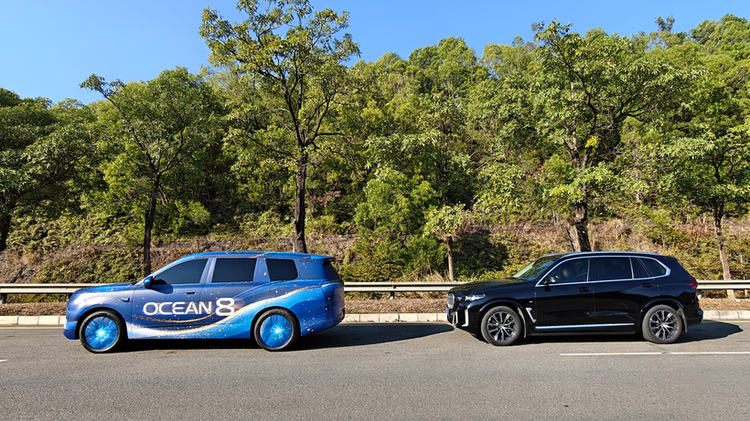 从尺寸上来看,当把海狮08和宝马X5停在一起时,前者整车气场可以说是丝毫不落下风。虽说目前官方没有明确公布这台海狮08的具体信息参数,但我们预计:其车长肯定超过了5米1、而轴距则很可能达到了3米级,能够满足刚需家庭用户对空间实用性的需求,也可以给到那些增换购用户不错的品质和高端仪式感。