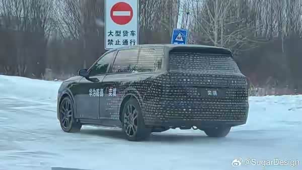 新车侧面喷涂着“华为乾崑”“奕境”的字样,虽然面纱尚未完全揭开,但明显能看出新车是典型的全尺寸SUV,外观大气稳重。