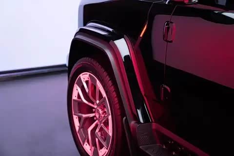 作为硬派方盒子车型,新车腰线贯穿始终,前、后侧翼子板搭配了凸出于车身的轮眉,同时还配备了全新设计的轮圈,辅以红色刹车卡钳,突出性能与运动气息。侧窗设计使玻璃前后齐平,不仅勾勒出简洁利落的经典轮廓,更实现了风阻优化与驾驶视野拓宽的双重实用价值。