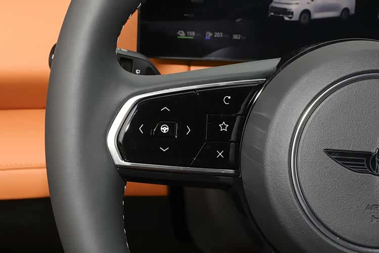 进入车内,车内大面积采用了软质材料进行包裹,营造出舒适丰氛围。中控台采用的是15.4英寸中控屏+10.25英寸仪表屏+19.8英寸AR-HUD,提供Flyme Auto 2智能座舱系统,搭载骁龙8295P芯片,支持手机车机互联、可见即可说、智能问答等主流功能。