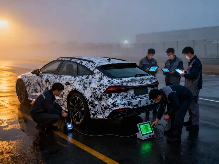 凌晨5点,上海安亭的某汽车测试场还笼罩在薄雾里,零星路灯的光线下,一辆裹着厚重伪装的 奥迪A7L(参数|询价)旅行版静静停着。5名工程师围在车旁,手里的平板电脑屏幕闪烁着数据流——这是路试团队的集结时刻,也是谍照背后24小时故事的开端。