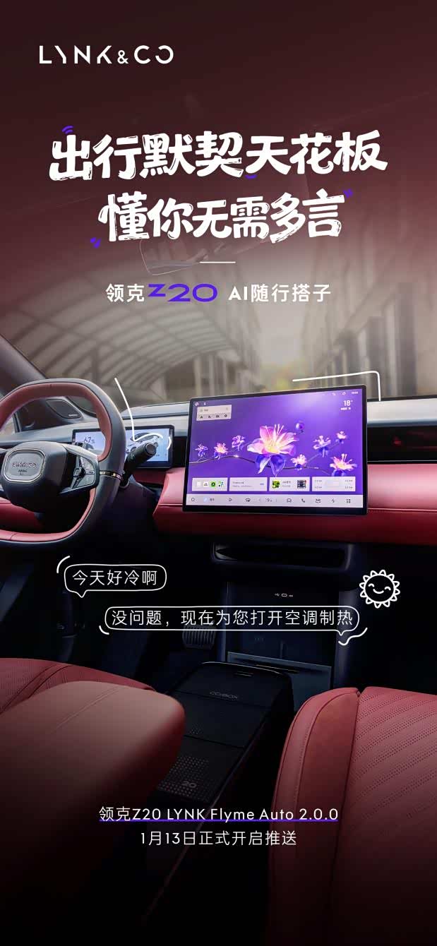 在新能源市场逐渐走向成熟的当下,用户对一款车的评价标准正在发生细微却深刻的变化。动力形式、续航数据已不再是唯一关注点,反而是每天都会接触到的车机系统,决定了用车体验是否顺畅、是否耐用。系统是否好用、能否持续升级,正在成为影响购车决策的重要因素。在这样的背景下,领克Z20迎来了LYNK Flyme Auto 2.0.0版本OTA更新,为15万级纯电SUV带来一次面向长期使用的体验进阶。