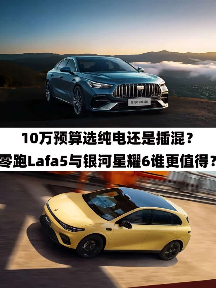 当主流车型价格全面进入10万区间,我们买到的早已不仅是一台代步工具,更是一场关乎体验、成本与生活方式的全面价值竞赛。今天这场对决,我们不讲虚的,只聊实的,一边是科技感拉满、驾驶乐趣突出的纯电黑马 零跑Lafa5(参数|询价);另一边则是续航零焦虑、性价比惊人的插混选手吉利银河星耀6。