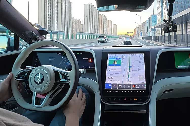 这套系统在高速和封闭道路上,表现比较稳定,领航辅助功能可以顺畅地完成车道保持、自主变道以及进出匝道等基础操作,在横向变道的节奏控制上较为平顺,没有明显的突兀感。在决策方面,追求稳健,主动变道超车的情况比较少。 在交通流密集的城市复杂路段,系统博弈逻辑“保守”,在面临无保护转向、逆行车辆或外卖单车切入时,系统的安全策略极其保守。甚至应对某些特殊路况时,会出现偏离路线、误入逆行的情况。
