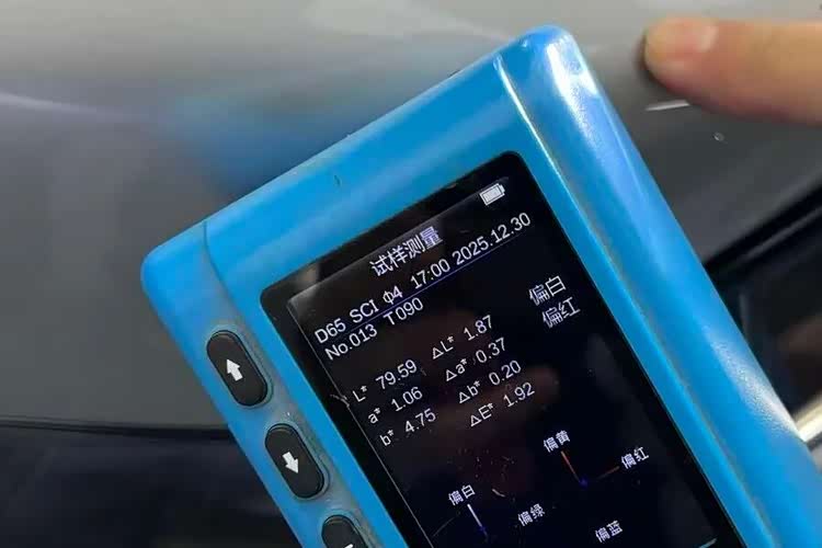 经过测试,最大色差值位于前保险杠处,色差值为1.92ΔE,比基准点偏白偏红。从数值上来看,这辆车的喷漆工艺质量控制还可以。