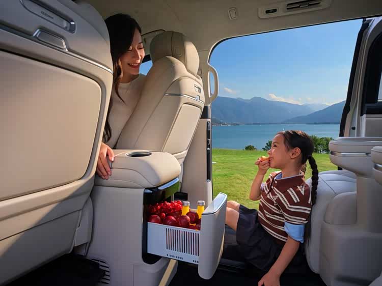 舒适性方面,新车车内配有200mm宽的二排中央通道,方便乘员在车内穿行;座椅采用 Nappa真皮材质,11层云感SPA座椅设计,一二排座椅配备通风、加热、按摩功能,三排支持通风、加热及电动靠背调节。同时,车内搭载-6℃~50℃超宽温域冷暖箱、27扬声器Flyme Sound无界之声系统、后排娱乐巨幕,配合双层夹胶静音玻璃、主动降噪技术及静音轮胎,提升驾乘舒适性;全环保材料座舱搭配智能新风系统和负氧离子发生器,保障车内空气质量。