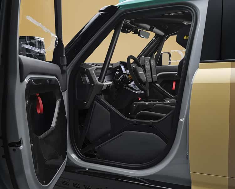 我们来看看这辆赛车的原型量产车,路虎卫士OCTA。这款车可以看作是路虎卫士的高性能版本,搭载了4.4T V8轻混动力系统,可以输出最大635马力,0-100km/h加速仅需4秒。新车可以选装20-22寸轮毂,并且配备了布雷博刹车,售价199万元起。