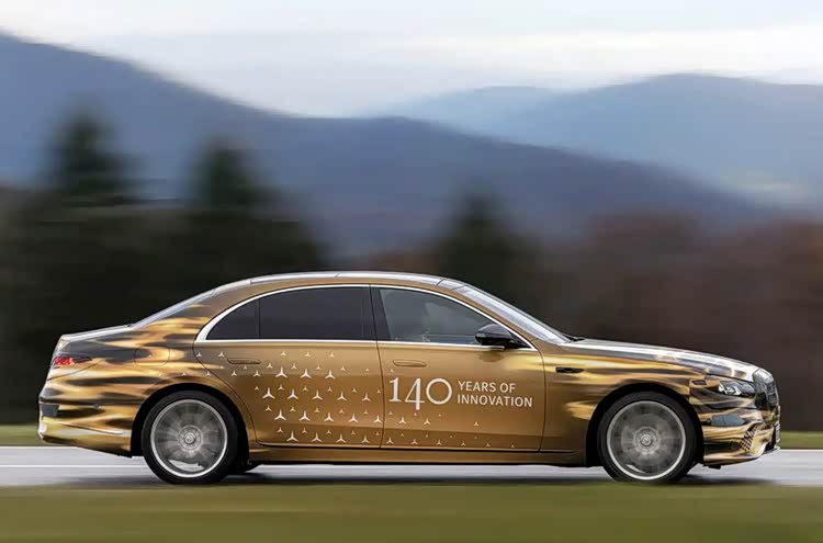 车身侧面延续经典优雅轮廓,保留伸缩式门把手以优化风阻,搭配全新造型多辐式轮辋,兼顾豪华感与空气动力学性能。车尾变化聚焦灯组,尾灯外壳保持原有形态,内部采用与前大灯呼应的三叉星徽光源,每侧各设三组星芒元素,点亮后层次丰富。后包围造型基本延续现款,双边共双出扁口排气布局得以保留,整体设计在传承经典的同时,通过细节升级强化品牌辨识度。