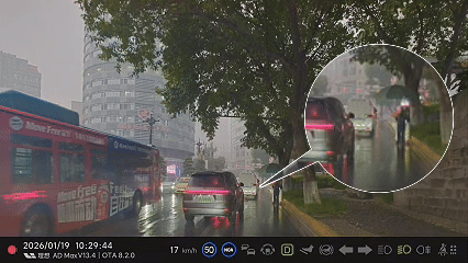 不仅是车,当同向车道出现包括机动车、人力车等阻挡物的时候,理想都能很好地判断并且避让,并不会随意刹车。这次我的前方出现了一个手推车,并且左边车道几乎是拥堵的状态,理想迅速判断了左侧可以避让的横向距离,在几乎没有太大减速的情况下,往左打方向非常丝滑地避开了右侧的手推车,继续右转,这种表现甚至比真人开得还要好。