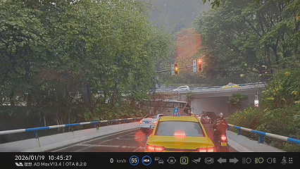 在红绿灯启停以及窄路会车上理想这一版OTA表现都十分不错。绿灯亮起之后能明显感觉到理想是慢慢地在加大电门,不会有额外点头或者拖拽的感觉,这对于晕车乘客来说特别友好。