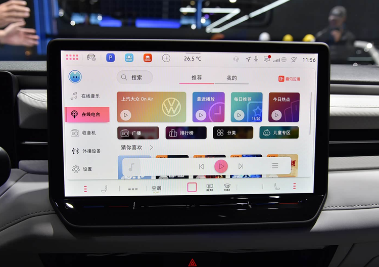 走进内饰,内饰的设计上,这款车一下子高级了不少,遥想六七年之前,我我朋友去买大众朗逸的时候,那个时候的朗逸内饰是多么的廉价,显示屏小的可怜,而且整个车内基本都是硬塑料,甚至说连倒车影像都没有。而现在的大众朗逸,你们可以看一下,全液晶的仪表,悬浮式的中控屏,而且显示屏的尺寸非常之大,至于它的设计上,它还变了哪些地方,那就是它的DSG挡把没有了,换成了怀挡设计,这样子让它显得更加的高端大气,至于在配置方面,这款车型也是有很多提升的,高配的车型将会提供L2级的辅助驾驶,支持全速自适应巡航,车道保持辅助系统功能等等。顶配的车型还支持主驾驶电动调节及加热等功能。除此之外,它还配上了高通骁龙的8155芯片,还配接入了DeepSeek应用,前排还有40瓦的无线充电,后排有杯架、30色氛围灯、自动空调等等。