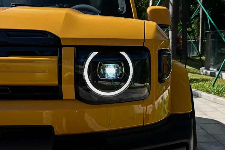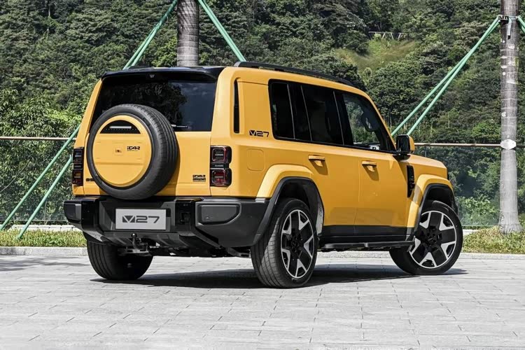 iCAR V27这台车应该可以算是一台全球车,在国内亮相之前,它就已经以iCAUR V27的名字出现在了迪拜、完成了全球首秀,并被不少阿拉伯世界的媒体给放在了头条上。可这曝光度高不代表车就一定好,它是否适合国内用户?反正从车辆四四方方的方盒子造型来看,它对于很少接触到越野车的普通用户来说还是有视觉吸引力的。而与我们看到的深蓝G318、福特烈马不同,它既不像前者那样过于强调个性科技,也没有像后者去还原过去传统越野车的复古时尚,而是选择了一面用圆环复古大灯、宽体包围来强调硬度,一面用悬浮式后视镜、半封闭D柱,还有更清晰的立体折线来迎合当下的科技化审美,这平衡度把握得确实不错。