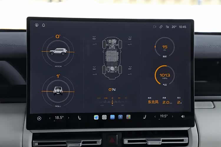 智能方面,iCAR V27在主驾布局了嵌入式数字仪表,而中控台上则是15.4英寸2.5K悬浮屏,预计还会有抬头显示系统予以协助。同时,8295芯片会让车辆的智能语音交互、远程车控以及Carlink/CarPlay/HiCar手机互联等体验保持流畅度;而且针对多场景驾驶,车机也能专门显示海拔、气压、车身三维姿态等环境与车况数据,这对越野驾驶与出行安全是有益的。