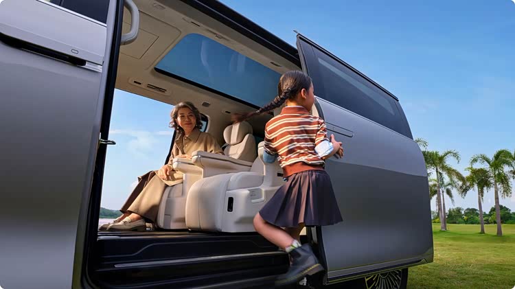智能配置方面,银河V900再次展现“后浪优势”,搭载了行业领先的高通骁龙8295P芯片和Flyme Auto 2.0系统,带来丝滑顺畅的交互体验,而腾势D9的车机系统响应速度较慢,有时还会出现卡顿现象;同时银河V900内置的AI助手EVA具备强大的环境感知与学习能力,能精准识别儿童哭声自动调小音量,堪称“带娃神器”,而腾势D9的智能助手功能相对单一;影音娱乐方面,腾势D9的双12.8英寸后排液晶屏也能为后排乘客提供一定的娱乐支持,不过银河V900的17.3英寸吸顶屏尺寸更大,观看体验更佳,而且其27扬声器音响比腾势D9的16扬声器在音质表现上更为出色,能够营造出沉浸式的环绕声场,无论是观看电影还是聆听音乐,都能让乘客仿佛置身于专业的影音室之中。