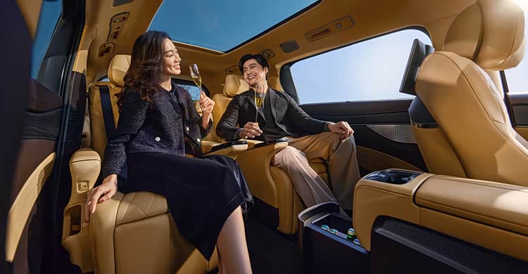 先看颜值,两款车走的是完全不同的路线。银河V900不走寻常路,以“陆地游艇”为设计核心,在保持MPV特征的同时,整体线条更为优雅大气,24K金天马车标闪瞎眼,分体式大灯巧妙隐藏于两侧波浪形格栅之中,再搭配流畅车身,活像个“移动的豪华派对船”,家用商务两相宜,回头率堪比超跑。
