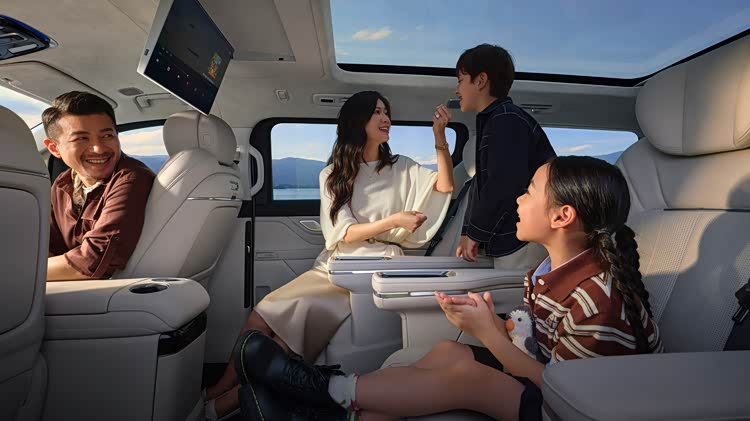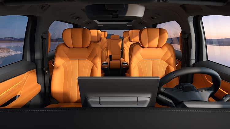 至于内饰设计,也是一般新能源汽车固有的造型:540度全景影像系统,L2级别的千里浩瀚H5智能驾驶辅助系统。此外,还匹配了全景大天幕,15.4英寸的悬浮式中控屏幕,后排也搭载了17.3英寸的娱乐大屏,更是搭载了19.8英寸的HUD数字抬头显示功能。值得一提的是,座椅加热、通风,这些简单的设计做到了标配,中高配置车型还搭载按摩功能;第2排是两个独立的航空座椅,搭配上大彩电,车载冰箱设计,舒适性较高。