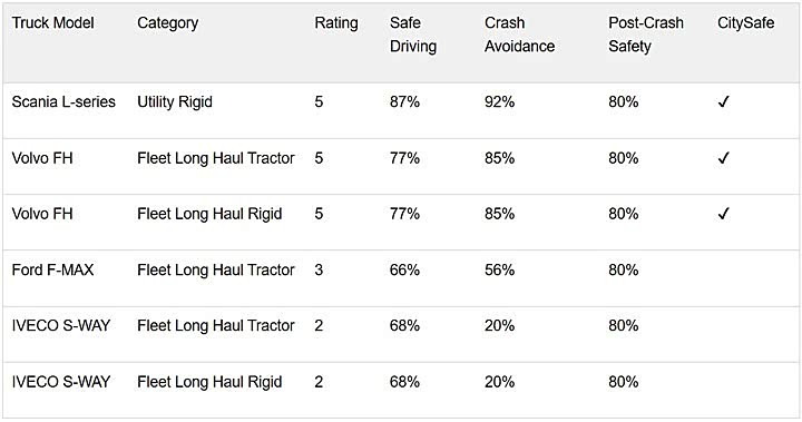 继 Euro NCAP 于 2025 年 10 月初公布多款重型卡车的评测成绩后,近日也揭晓了新一轮的测试结果,受测的车型包含了 Scania L-series、Volvo FH ( 两种车型版本 ) 、福特 F-MAX 和 Iveco S-WAY ( 两种车型版本 ) ,最终 Scania L-series 与 Volvo FH 获得了最佳的 5 星肯定,并且同步得到「CitySafe」城市安全的认证;至于 福特 F-MAX 和 Iveco S-WAY 分别被评为 3 星与 2 星,在安全配备上都还有进步的空间。