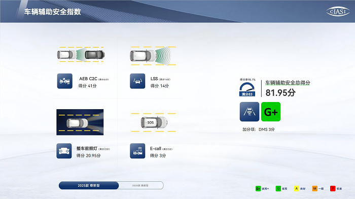 在耐撞性与维修经济性分指数测评中,其结构耐撞性获得了优秀+评价。此外,还凭借低速主动安全方面的出色表现获得了额外加分。这意味着在日常生活中,万一不幸发生碰撞,车辆车身更为坚固,维修成本更低,同时还能减轻对其他车辆的伤害,全方位保障用户的安全与财产。