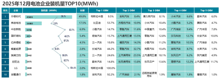 动力电池前十大电池供应商是:宁德时代、弗迪电池(比亚迪)、中创新航、国轩高科、亿纬锂能、蜂巢能源、瑞浦兰钧、欣旺达、LG、吉曜通行(吉利)。TOP10的市场份额高达95.6%。