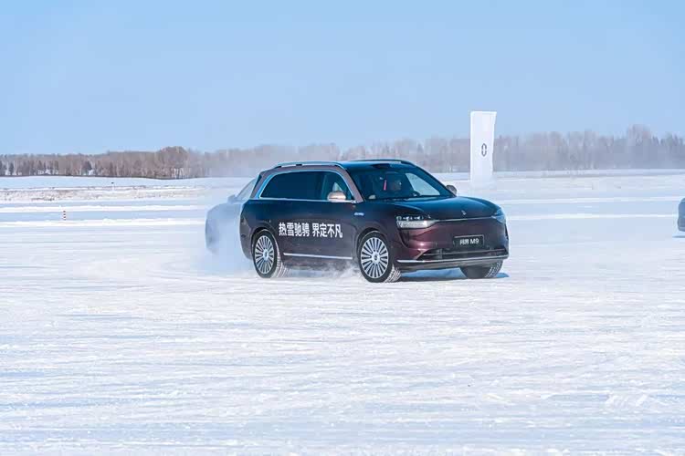 冰圆环最高车速测试模拟用户在环岛道路行驶时,遇道路结冰形成低附绕圆的极端工况,考验车辆的稳态转向特性、电子稳定系统的控制效能以及人车协同性。在半径100米冰圆环上进行测试的过程中,问界全系产品表现出色,如 问界M9(参数|询价)悬架支撑力充足,车身侧倾抑制能力佳,转向手感线性,在50km/h车速下,问界M9依然姿态稳定,未发生侧滑与甩尾。
