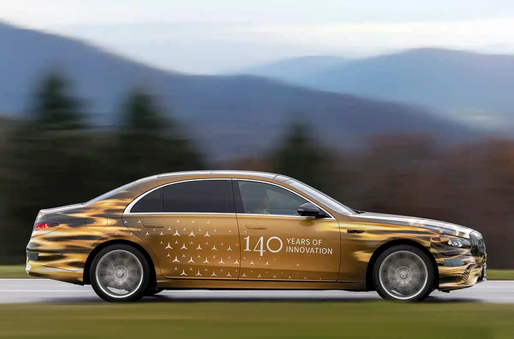 新款S级的车身侧面造型轮廓与现款车型区别不大,嵌入式门把手设计得到保留。前翼子板区域增设了感知硬件,表明该车的智能辅助驾驶能力预计会有所提升。