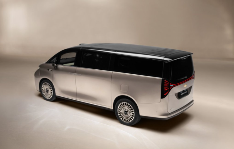 车身侧面部分的整体造型轮廓很方正硬朗,车顶线条和窗线很平直,车身腰线过渡很温润,使用了双侧侧滑门结构,车门把手为隐藏式,多幅式的轮毂有着不错的档次感。尺寸方面,其长宽高分别为5360/1998/1920(1940)mm,轴距为3200mm。尾部造型方正垂直,尾灯造型有着很高的辨识度,中间是贯穿式结构,两侧是发散式的造型。