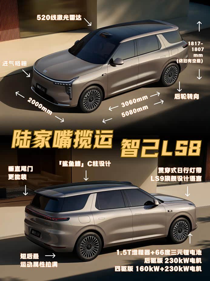 随着智己LS8官图的正式揭幕,这款在舆论场中潜伏已久的重量级选手,终于以一种惊艳的姿态重塑了大众对于豪华SUV的审美期待。它不再是单纯地追随某种既定的潮流,而是在力量感与精致感之间,划出了一道属于自己的分界线。业内资深观察者在初见此车时,便敏锐地捕捉到了其设计语言中的异质化元素,相比于此前智己家族那些极致流线、带有几分科幻柔美的作品,LS8展现出了一种前所未有的粗犷与硬核。这种转变并非简单的风格偏移,而是对大型SUV那份从容气场的精准捕捉。许多拥趸曾担心它会在旗舰大哥LS9的基础上进行配置降级,但根据目前流出的核心信息来看,这种忧虑显然是多余的。LS8不仅在空间维度上保持了极高的水准,在各项硬件规格上也全面向LS9看齐。这种战略安排让LS8的定位变得异常清晰:如果说智己LS9是坐镇云端的陆家嘴大揽胜,那么LS8则更像是那台充满律动感与爆发力的陆家嘴揽运。它在保持高级感与强大气场的同时,通过细节的重构,成功找到了迎合年轻心态的平衡点。