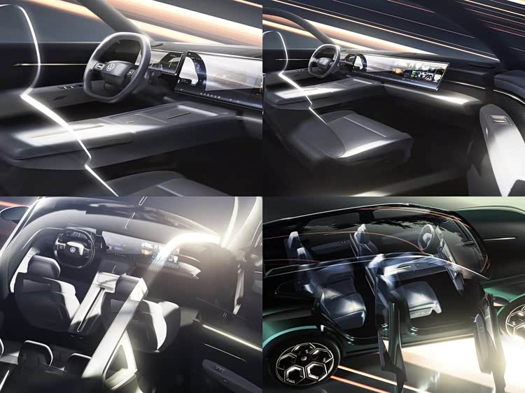 外观设计明显在强调新能源时代的“大众新形象”。封闭式前脸配合水晶矩阵大灯和发光金色VW标,辨识度很强,金色中央脊线贯穿车身,这种设计取向比传统大众更激进,也更年轻。21英寸轮毂、布雷博四活塞卡钳、无框车门,进一步强化了运动和高端感,但是否审美疲劳,取决于个人接受度。